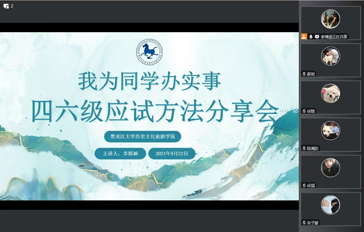 为助力四六级考试,帮助同学们提升考试成绩,历史文化旅游学院学生会于9月22日召开“四六级应试方法分享会”。此次应试方法分享会由李博涵同学主讲,2024级全体本科生新生参加。