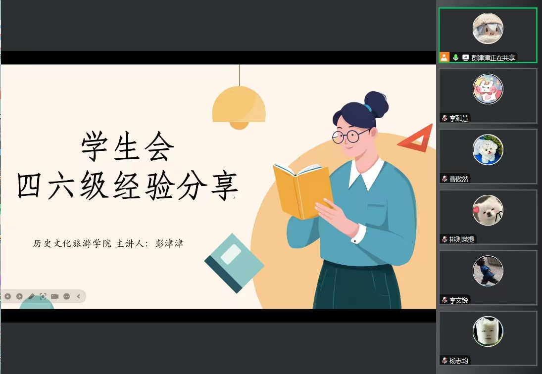 为促进学生会学风建设,帮助同学们了解四六级考试信息、掌握科学备考方法,历史文化旅游学院学生会于2024年5月8日召开学生会内部四六级经验分享会。本次分享会由秘书处主任彭津津主讲,学生会全体成员参与本次会议。