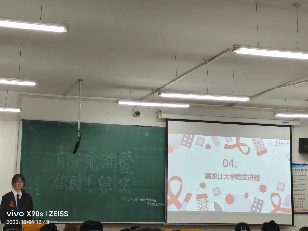 为普及艾滋病防治知识,提高大学生自我保护意识,树立正确的生命观、性道德观和责任意识,促进大学生的健康成长。历史文化旅游学院二级心理辅导站在黑龙江大学2023年青春健康·艾滋病预防宣传教育月期间于汇文楼324开展“青春充满爱,校园不留‘艾’”红丝带校园行-青春健康主题宣讲活动。会中宣讲人员认真仔细地客服艾滋病相关知识,同学们也在此次活动中收获颇丰,对艾滋的了解更加全面。此次活动作为防艾教育月的总结,有效的巩固了学生们的防艾知识,树立了健康的心理观念。