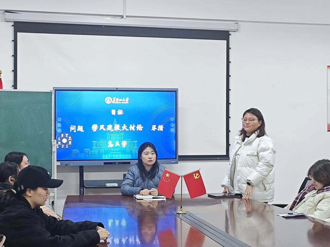 会上,张老师首先对学校转专业政策进行详细解读,她建议同学们立足个人兴趣与自身学习情况审慎选择,并现场解答学生疑问。随后,各班学习委员、班长就上学期班级学业情况进行总结汇报,针对课堂出勤、自习效果、成绩分布等具体问题提出改进方案,结合《黑龙江大学全面加强学风建设举措二十条》及学院实施方案,制定新学期“一对一学业帮扶”“每周自习室”等特色学风活动计划。