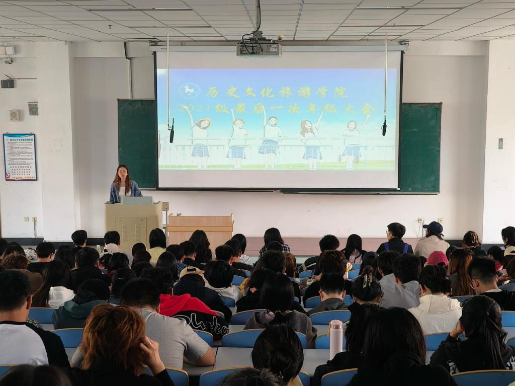 为有序推进2025届毕业生毕业工作,解读并传达毕业相关工作安排,切实保障毕业生平安、文明离校,5月22日,历史文化旅游学院于汇文楼180召开2025届毕业生最后一次年级大会。会议由2025届毕业生辅导员王佳琪主持,全体毕业生参加会议。