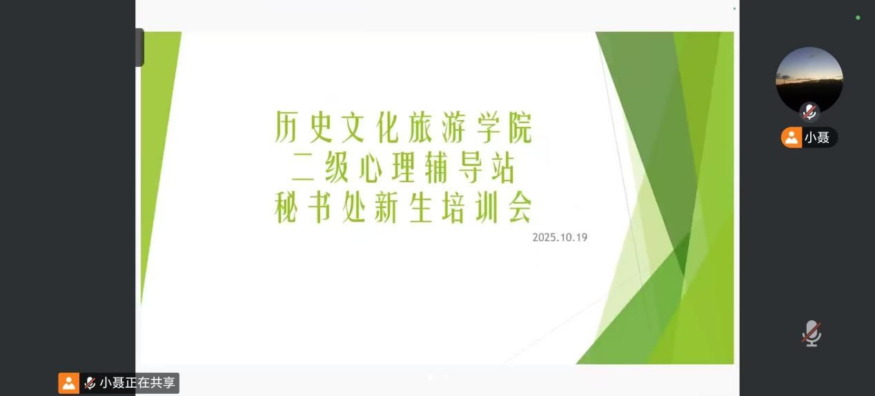 为系统提升新干事的工作能力与综合素养,加强学院二级心理辅导站的队伍建设,历史文化旅游学院二级心理辅导站于2025年10月组织召开了系列部门培训会。本次培训旨在帮助新成员快速熟悉业务、锤炼内功,为辅导站的持续发展夯实人才基础。