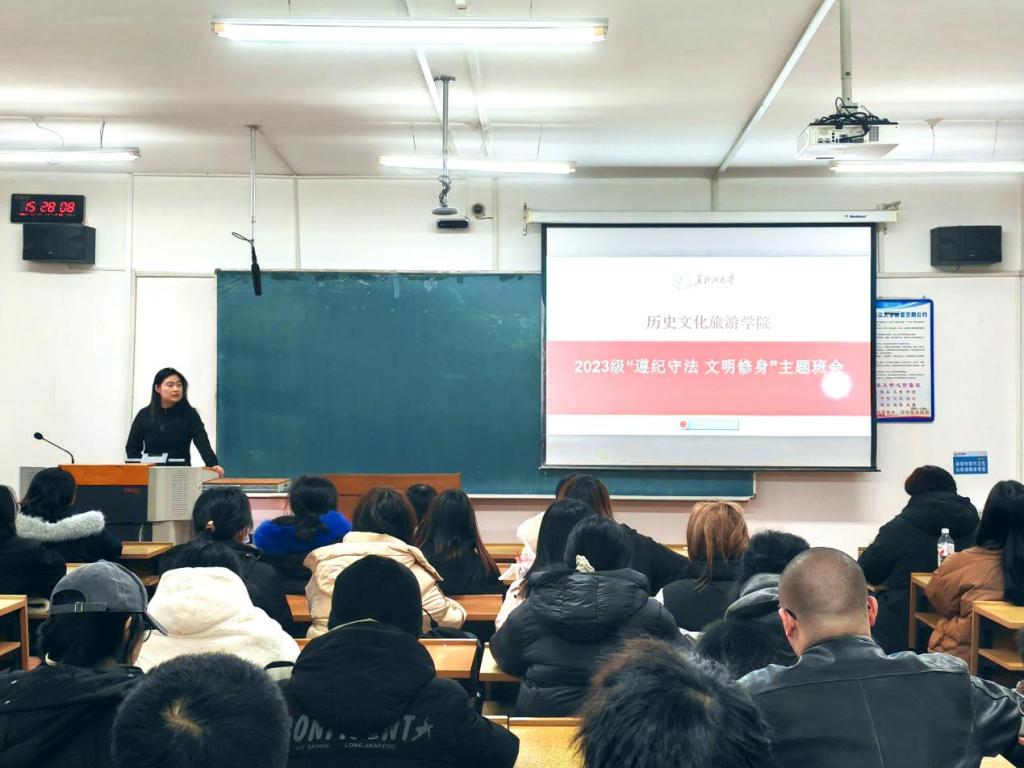本次会议切实提升了我院学生的规则意识和安全意识,为营造和谐稳定的校园环境奠定了坚实基础。希望同学们能认真贯彻落实管理规定的各项要求,共同维护良好的学习秩序和生活秩序,以饱满的热情和坚定的信念继续砥砺前行!(历史文化旅游学院供稿)
