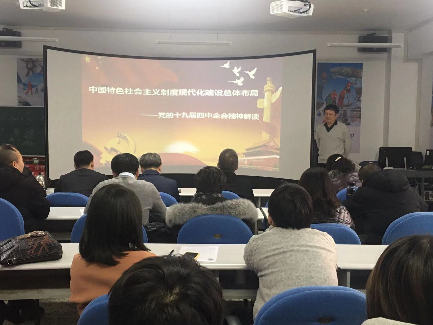 2019年12月27日,历史文化旅游学院师生在汇文楼639参加了十九届四中全会精神宣讲,本次宣讲由黑龙江大学十九届四中全会精神宣讲团成员、政府管理学院院长教军章老师作宣讲报告。