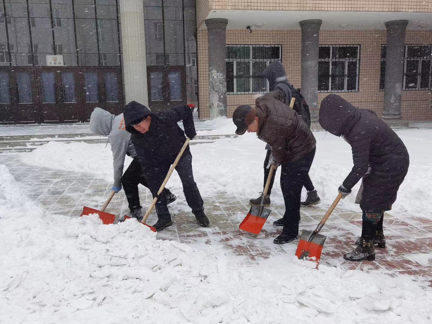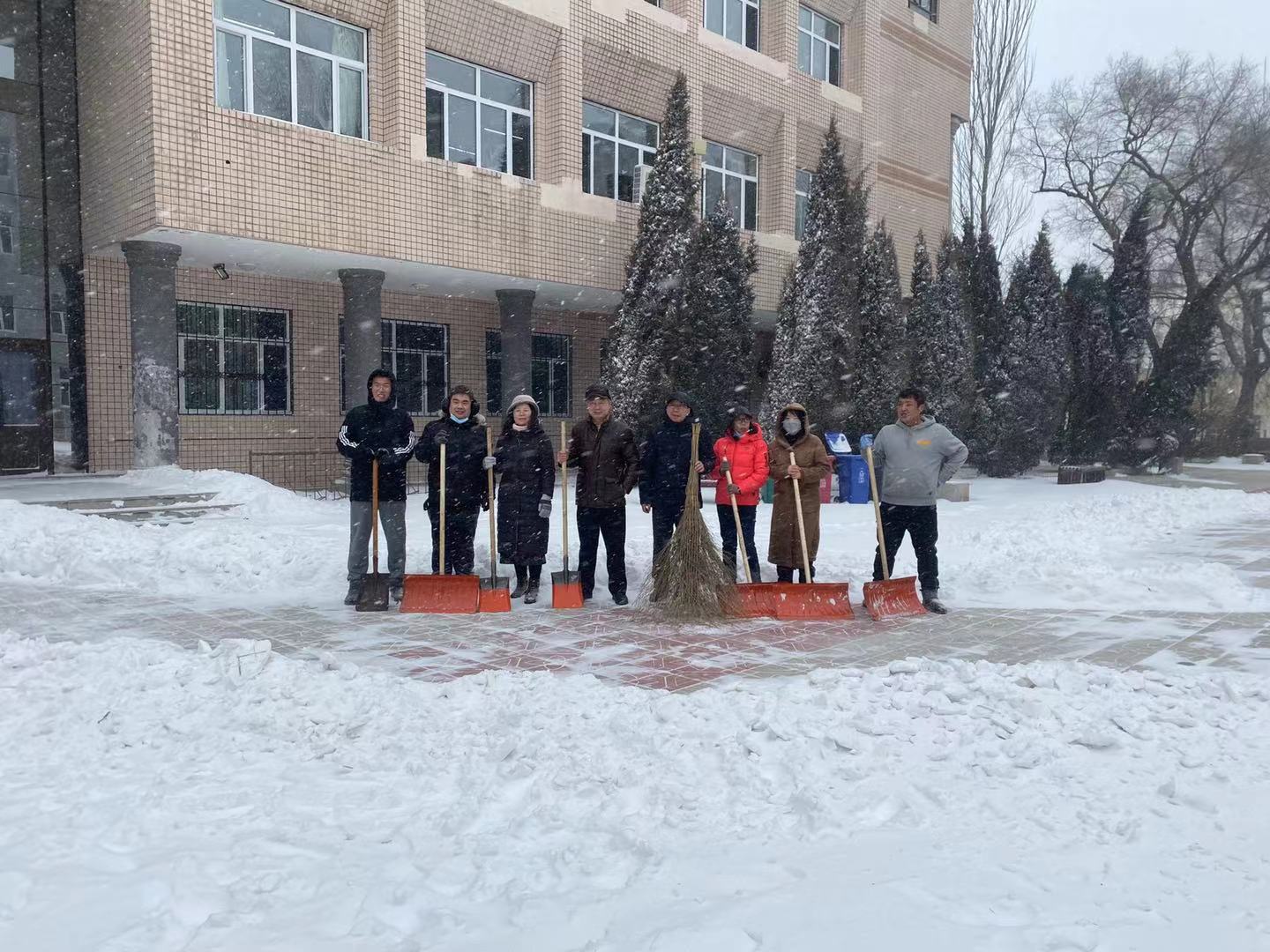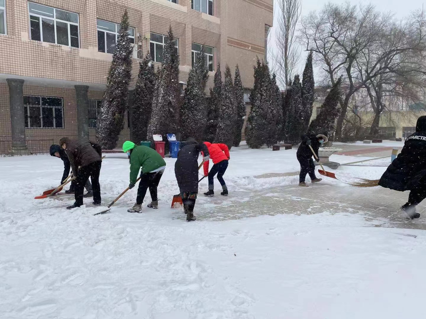 领导班子成员和各位老师发扬一不怕苦、二不怕累的精神,顶风冒雪,挥舞手中的扫帚、铁锨、雪推等工具,一鼓作气完成了清雪任务。看着来往图书馆的教师和学生走在清完雪的道路上,老师们脸上露出了欣慰的笑容。(历史文化旅游学院供稿)