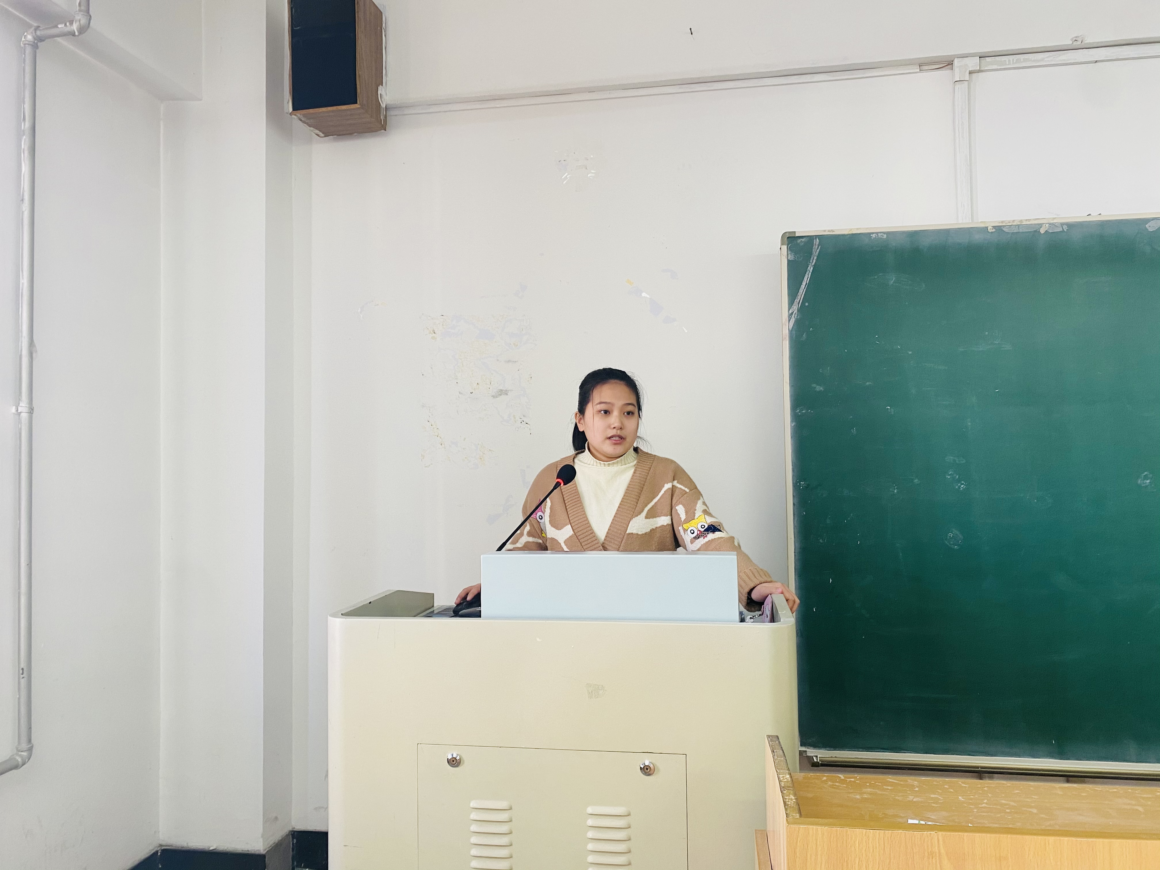 2018级学生党员陈倩瑶同学从“谁是先锋模范”、“先锋模范要做到什么”、“怎样成为先锋模范”三个方面进行讲述,她鼓励同学们在各个方面发挥学生党员的模范带头作用,成为复合型人才。2018级学生党员孙卓楠同学提出了紧密联系群众的重要性,并通过讲述曹渊同志的事迹让大家明白了为什么党员要发挥先锋模范作用。2019级学生党员周瑞向同学们分享了近期的学习心得,同时结合自身经历,总结了如何在日常生活中发挥先锋模范作用。2019级党支部的徐畅同学为同学们总结了党员发挥先锋模范作用的途径和方法,并对发挥先锋模范作用提出了建议,“发挥学生党员的先锋模范作用,是每一个学生党员的责任与义务,是我们不懈追求的目标”。