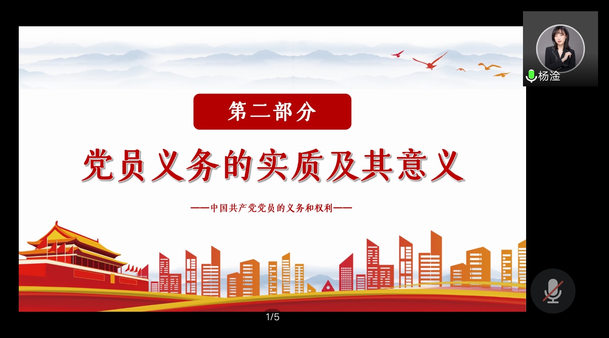 杨老师表示,作为一名学生预备党员,要严格的要求自己,自觉遵守党的纪律,多为同学们办实事,增强“四个意识”,做到“两个维护”,在学习生活中发挥学生党员的模范带头作用。