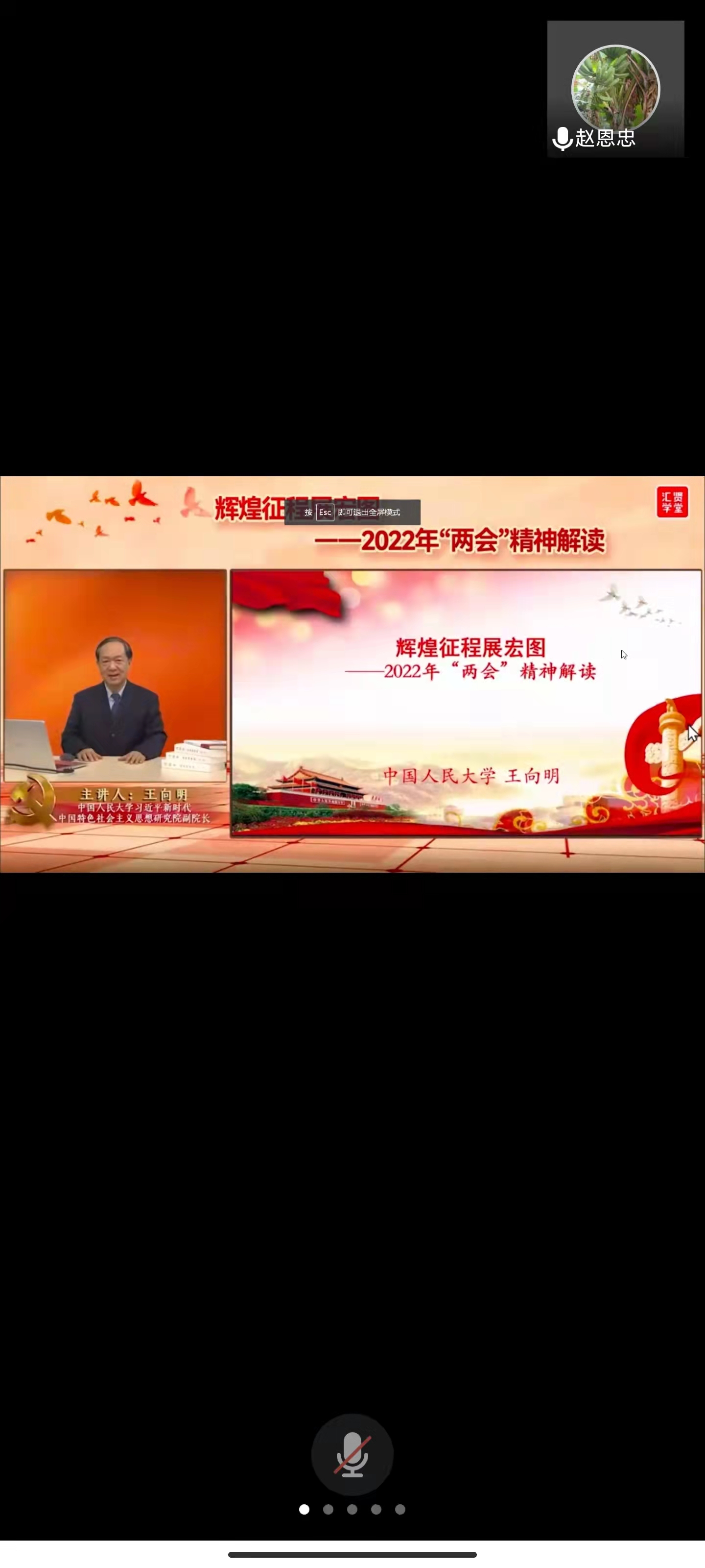 2022年4月6日,通过腾讯会议的形式组织理论中心组集体学习和科级干部两会精神培训,组织统一观看《辉煌征程展宏图》两会精神解读视频。