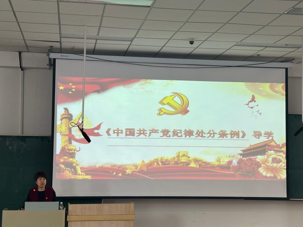 历史文化旅游学院组织员冯雪飞以“《中国共产党纪律处分条例》导学”为题目,从学习了解《关于在全党开展党纪学习教育的通知》讲起,教育引导入党积极分子经常进行思想政治体检,同党中央要求“对标”,拿党章党规“扫描”,用人民群众新期待“透视”,同先辈先烈、先进典型“对照”,不断叩问初心、守护初心,不断坚守使命、担当使命,始终做到初心如磐、使命在肩。(历史文化旅游学院供稿)