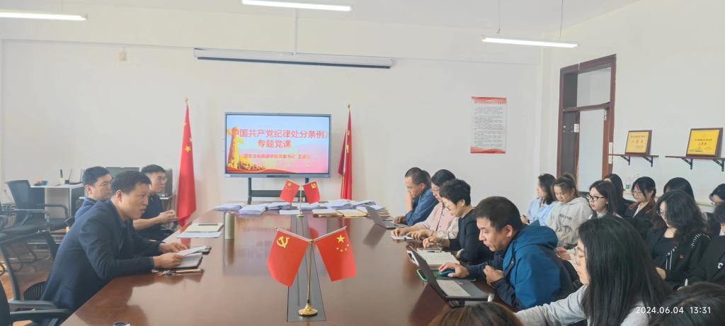 为深入推进党纪学习教育,扎实开展廉洁文化建设,历史文化旅游学院党委于2024年6月4日组织党纪学习教育专题党课。